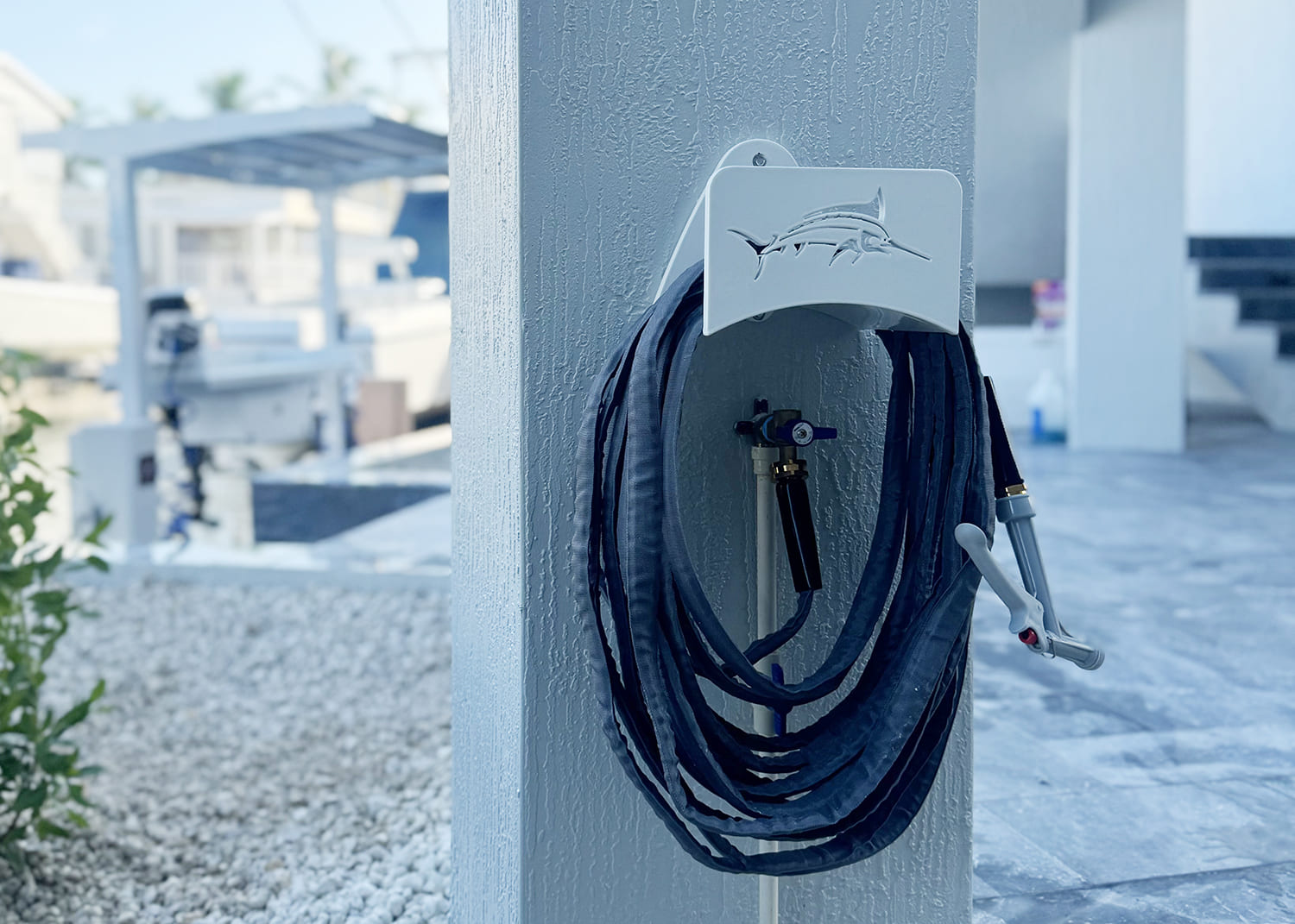 Don’t leave your hose tangled or sitting in puddles. The Hose Holder mounts easily to a dock or wall and keeps your hose neatly coiled and ready to use. Made from marine-grade aluminum with a durable powder-coat finish, it’s a simple, sturdy addition that helps keep your dock organized.