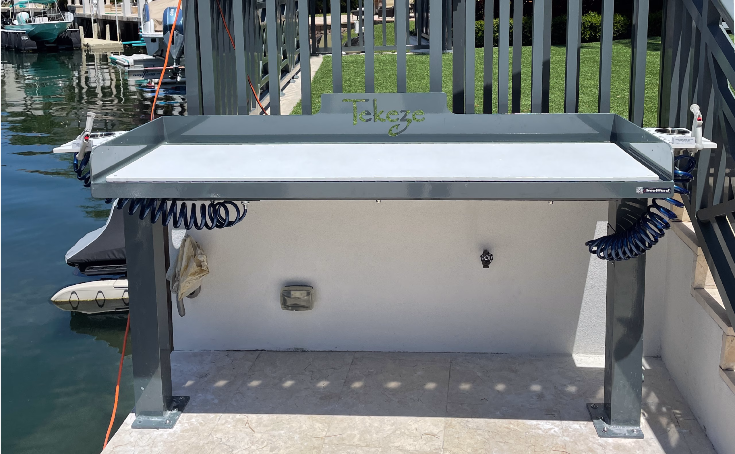 Each SeaWard table is made-to-order, giving you the option to personalize the backsplash with your boat’s name, a favorite fish, or your logo. Choose from a variety of powder coat colors and dock mounting options to suit your needs. Need a custom drain? Our team will collaborate with you to design the ideal drainage system for your setup.