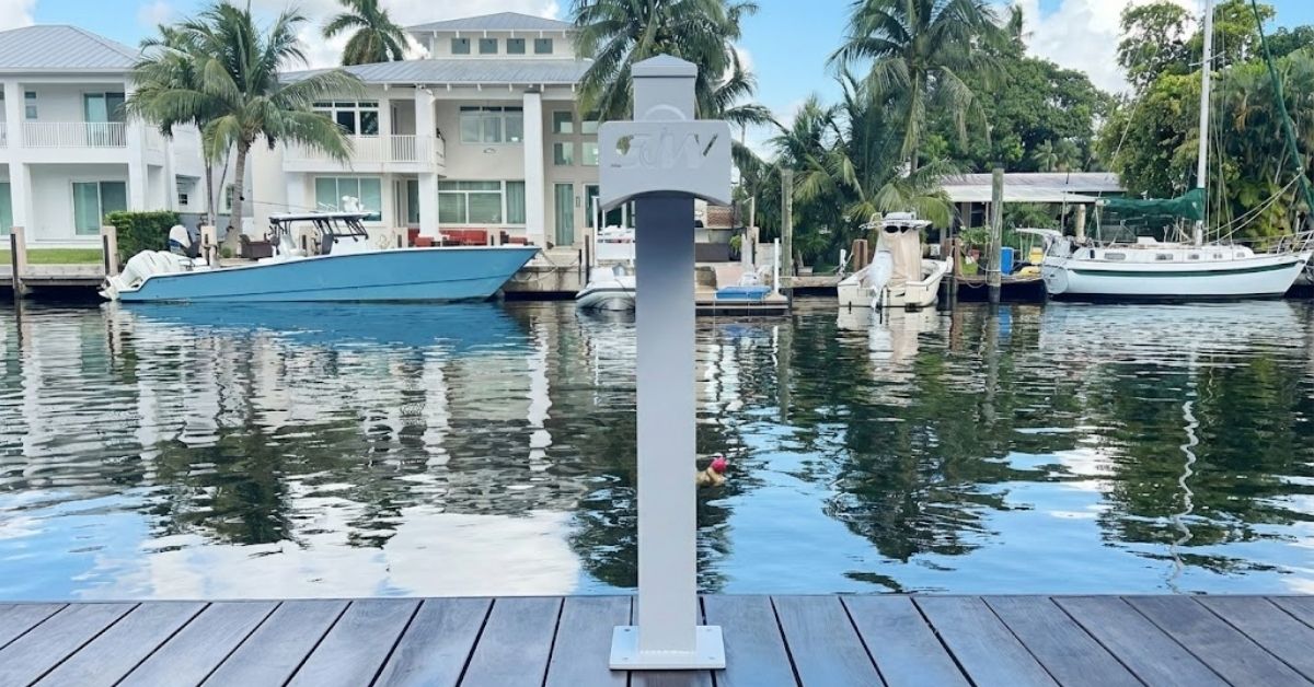 The Sea Post pedestal offers convenient shoreside water connections for residential and commercial docks. Its compact design is expertly crafted to assist with boat maintenance and various dockside needs. The product comes fully assembled and is ready to mount on a concrete or deck surface. You can customize your dockside experience by selecting the powder coat color and finish and adding a favorite icon or text to the hose holder—all included in the price. The Sea Posts are available in two sizes: a 4×4 post for water connectivity and a 6×6 post for both water and electrical connectivity.