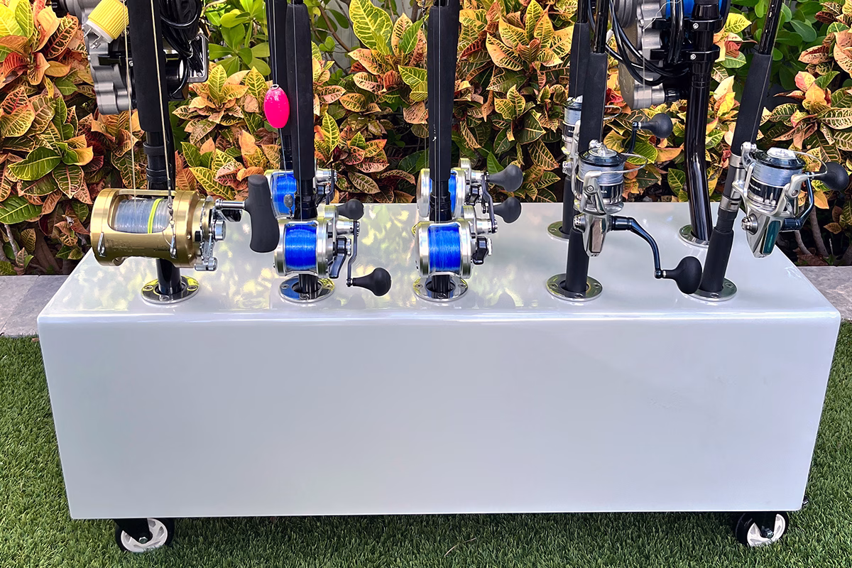 - The Glide. This caddy is helpful when transporting fishing rods from your vehicle or storage area to your boat. The sleek and secure design makes it easy to maneuver and can safely move many rods at once. When you’ve caught all the fish you can, place your rods back on the caddy and rinse with fresh water. Bonus perk: add your boat name or a favorite fish to the caddy for an extra layer of personalization.